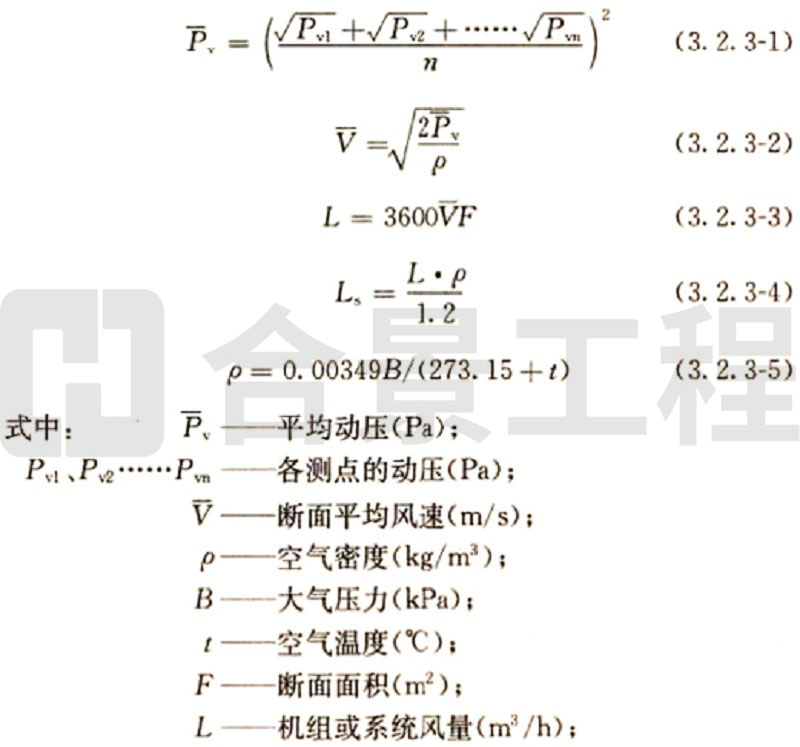 (2)當采用熱電風速計或數(shù)字式風遺計測量風量時,斷面平均風速為各測點風速測量值的平均值,實測風量和標準風量的計算方法與畢托管和微壓計測量計算方法相同。